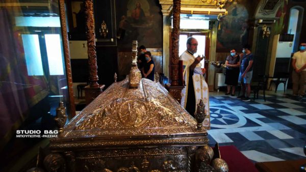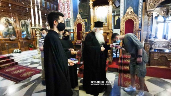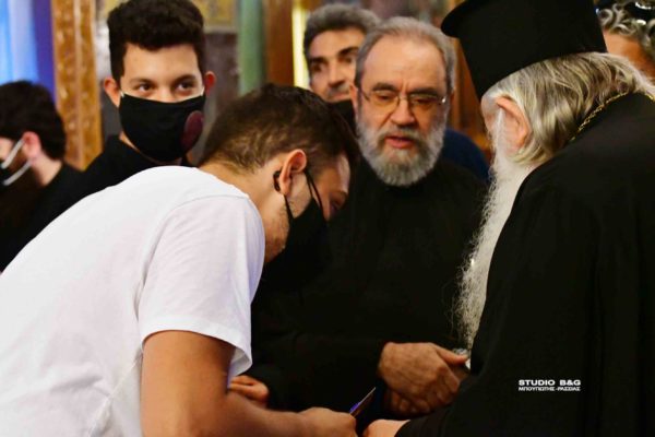 Μετά το πέρας της Ιεράς παράκλησης, ο Μητροπολίτης Αργολίδας δώρισε στα παιδιά που δίνουν Πανελλήνιες από ένα στυλό και μία εικόνα του Αγίου Πέτρου επισκόπου Άργους.