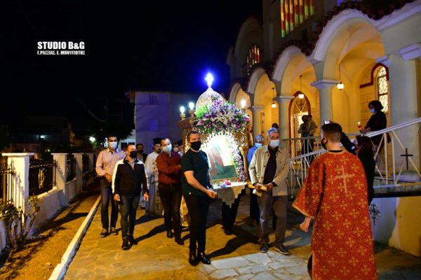 Μετά το πέρας του εσπερινού ακολούθησε μικρή λιτανεία πέριξ του ναού προς ευλογία των πιστών που παραβρέθηκαν στην εορτή της Αγίας.