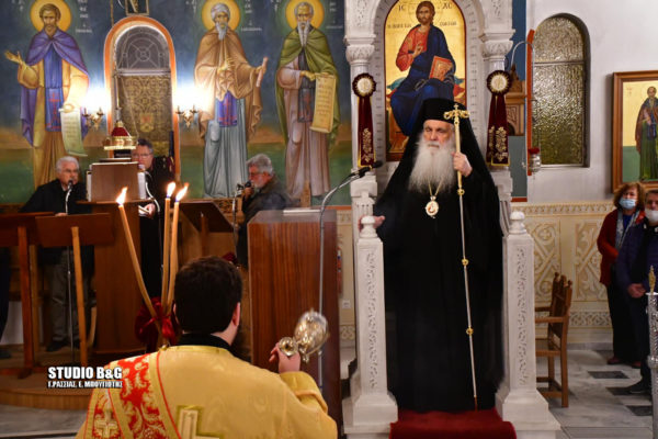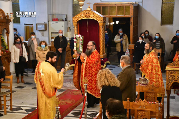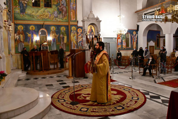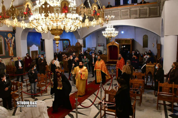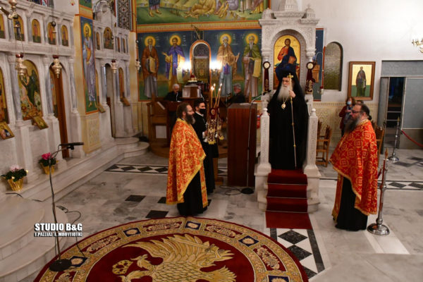 Σήμερα, παραμονή της εορτής, στον προσκυνηματικό Ιερό Ναό του Αγίου Αναστασίου στο Ναύπλιο τελέσθηκε αρχιερατικός εσπερινός, σύμφωνα με τα προβλεπόμενα υγειονομικά μέτρα για τον περιορισμό του κορονοϊού, χοροστατούντος του Σεβασμιωτάτου Μητροπολίτη Αργολίδος Νεκταρίου.