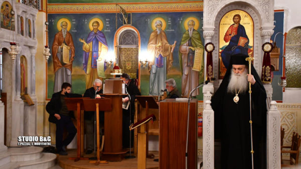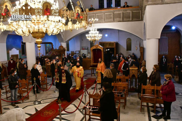 31/01/2021 31/01/2021 Τον Πολιούχο της, Άγιο Αναστάσιο, γιορτάζει αύριο, Δευτέρα, 1η Φεβρουαρίου 2021, η Πρωτεύουσα της Αργολίδας, το Ναύπλιο. Σήμερα, παραμονή της εορτής, στον προσκυνηματικό Ιερό Ναό του Αγίου Αναστασίου στο Ναύπλιο τελέσθηκε αρχιερατικός εσπερινός, σύμφωνα με τα προβλεπόμενα υγειονομικά μέτρα για τον περιορισμό του κορονοϊού, χοροστατούντος του Σεβασμιωτάτου Μητροπολίτη Αργολίδος Νεκταρίου. Κατά τον εσπερινό έψαλλε ο...