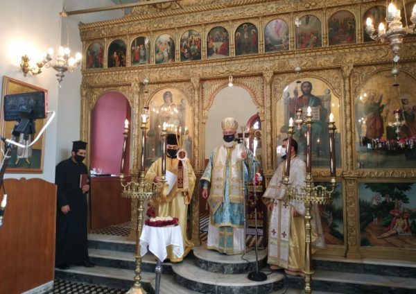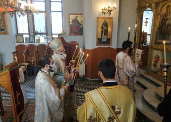 Στο τέλος ο Σεβασμιώτατος τέλεσε την ειδική δέηση για την πανδημία από την λοιμική νόσο του κορωνοϊού και ανέγνωσε την σχετική ευχή.
