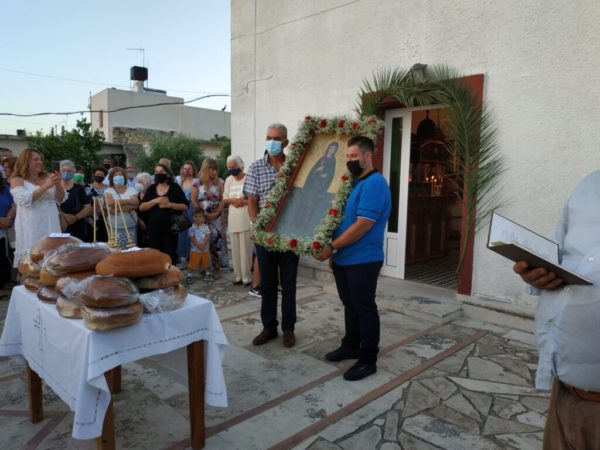 Ο Σεβ. κ. Ανδρέας αφού κύρηξε τον Θείο λόγο, ευλόγησε τους προσφερόμενους άρτους και ευχήθηκε στο εκκλησίασμα πλούσια τη χάρη της Αγίας Μακρίνας στη ζωή μας.