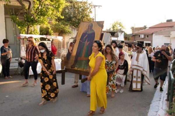Στο τέλος ακολούθησε η περιφορά της Εικόνας και του Ιερού Λειψάνου της Αγίας Κυριακής πέριξ του Ιερού Ναού.