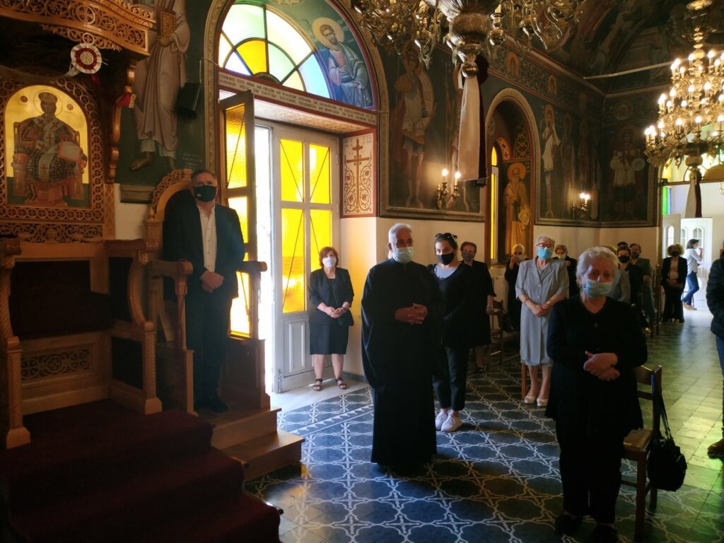 Στην Θεία Λειτουργία πήραν μέρος ο Πρωτοσύγκελλος της Ιεράς Μητροπόλεως Πανοσιολ. Αρχιμ. κ. Κορνήλιος Αθανασάκης, ο Πανοσιολ. Αρχιμ. κ. Αγαθάγγελος Γιανναράκης και ο Διάκονος Κωνσταντίνος Αρμενάκης, ενώ συμπροσευχόμενοι παρέστησαν ο Πρωτοπρεσβύτερος Δημήτριος Πάγκαλος, Προϊστάμενος της Ενορίας, ο Οικονόμος Νικήτας Καπελλάκης και ο Πρεσβύτερος Ιωάννης Καπελλάκης.