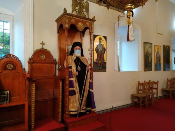 Στο τέλος ο Σεβασμιώτατος κ. Ανδρέας τέλεσε την ειδική δέηση για την προστασία από την λοιμική νόσο της πανδημίας του κορωνοϊού και ανέγνωσε την ειδική ευχή.
