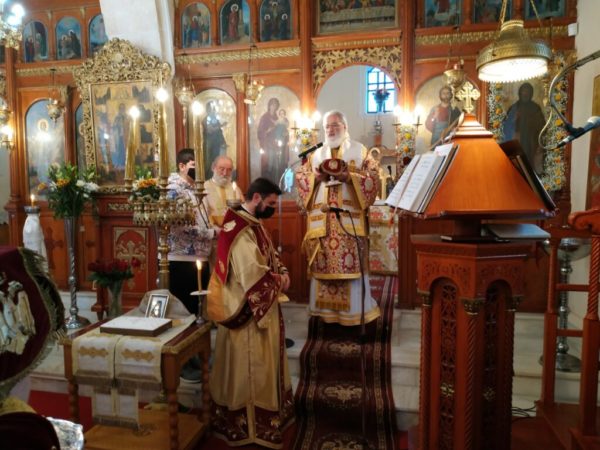 Στο τέλος ο Σεβασμιώτατος κ. Ανδρέας τέλεσε την ειδική δέηση για την προστασία από την λοιμική νόσο της πανδημίας του κορωνοϊού και ανέγνωσε την ειδική ευχή.