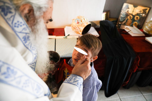 Σιγά σιγά άρχισε η κατάσταση να καλυτερεύει.Να πω εδώ ότι ο Γέροντας Δημήτριος μας είχε πει να κοινωνούμε το Χρήστοοπωσδήποτε κάθε Κυριακή.Πράγμα που πριν την μεταμόσχευση δεν το έκανα γιατί φοβόμουν.Μου είπε να πάω να βρω κάποιον ιερέα και αυτός θα βρει λύση όπως και έγινε.Με θεία φώτιση πήγα πολύ διστακτικά είναι η αλήθεια στην ενορία του Αγίου Θεράποντα και πάλι να ρωτήσω και όλα έγιναν όπως μου τα είπε ο Γέροντας. Ο πατήρ δέχθηκε και μάλιστα μου πρότεινε μια λύση που εγώ ούτε καν είχα σκεφθεί.Να μπαίνει ο Χρήστος από την πλαϊνή πόρτα του Ιερού και να κοινωνεί πρώτος πριν βγει η κοινωνία έξω ώστε να μην έρχεται σε επαφή με τον πολύ κόσμο.