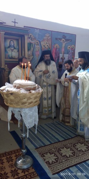 Ο Πρωτοσύγκελλος, ο Ιεροκήρυκας, ο Αρχιερατικός Επίτροπος της περιοχής π. Χριστοφόρος, και άλλοι κληρικοί συλλειτούργησαν μετά του Σεβασμιωτάτου. Ο Σεβασμιώτατος υποσχέθηκε, εκτός από την ιδιαίτερη προσευχή και την ψυχική ενίσχυση προς τον πονεμένο λαό, να προσφέρει αγαθά και άλλα αναγκαία για την ανακούφιση των κατοίκων. Η βοήθεια θα προσφέρεται από τώρα και για όσο χρειαστεί.