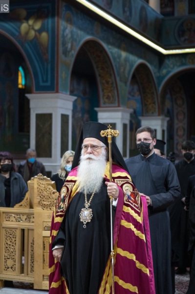 Στον Ιερό Ναό Αγίου Δημητρίου Βόλου λειτούργησε ο Μητροπολίτης Δημητριάδος και Αλμυρού κ. Ιγνάτιος, παρουσία πλήθους πιστών, και τηρουμένων των μέτρων για την προστασία της δημόσιας υγείας, σήμερα Κυριακή 16 Ιανουαρίου. Κατά την Θεία Λειτουργία, ο Σεβασμιώτατος τέλεσε την εις Διάκονον χειροτονία του π. Γεωργίου Γκόλια, εγγάμου, ο οποίος θα ενταχθεί στην χορεία των αμίσθων Κληρικών της Τοπικής Εκκλησίας. Μεταξύ άλλων, Σεβασμιώτατος είπε ότι ” όποιος θεωρεί τον εαυτό του αγιότερο μέσα στην Εκκλησία, διαχωρίζεται από τον Χριστό και την κοινότητα, γιατί είναι θύμα του εγωισμού του”.