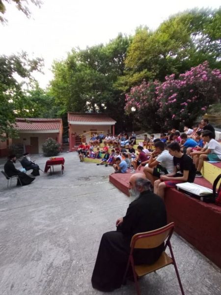 Ο Σεβασμιώτατος είχε την ευκαιρία να επικοινωνήσει με τα παιδιά και τα στελέχη, να απευθύνει πατρικούς λόγους, επικεντρώνοντας τη σκέψη του, στο θέμα της φετινής κατασκήνωσης, που δεν είναι άλλο από τους Νεομάρτυρες της πίστης μας, αυτές τις «Μορφές Ελευθερίας», που έλαμψαν με τη ζωή τους και τη θυσία τους στα δύσκολα χρόνια της σκλαβιάς. Ο Σεβασμιώτατος αναφέρθηκε στον βίο του τοπικού Αγίου Αποστόλου του Νέου, ως χαρακτηριστικό παράδειγμα νεομάρτυρος.