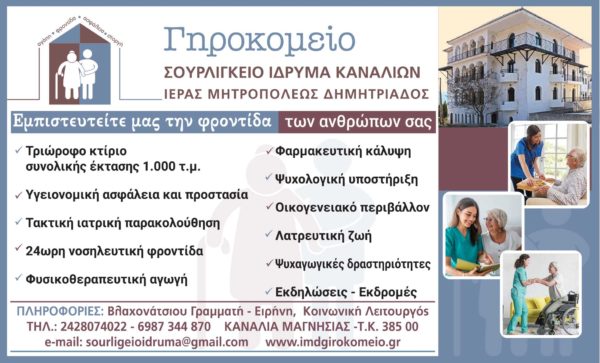 Δημόσιο ευχαριστώ από το Σουρλίγκειο Γηροκομείο Καναλίων