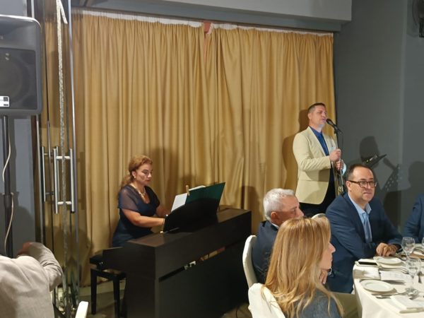 Η εκδήλωση συνεχίστηκε με την προσφορά εορτίου δείπνου και ένα πλούσιο μουσικό πρόγραμμα που απέδωσαν με μοναδικό τρόπο δύο καταξιωμένοι καλλιτέχνες της πόλης του Βόλου ο κ. Βασίλειος Αγροκώστας, Μουσικολόγος, Καθηγητής στο Μουσικό Σχολείο του Βόλου και Πρωτοψάλτης του Ιερού Ναού Ευαγγελιστρίας Νέας Ιωνίας και η κ. Σέβη Μαζέρα-Μάμαλη, Μουσικολόγο, Διδάκτορα Βυζαντινής Μουσικολογίας, Καθηγήτρια πιάνου και Δομεστίκαινα του Γυναικείου Χορού Ψαλτριών « Αι Άδουσαι».