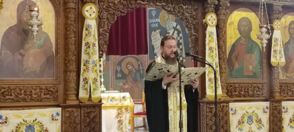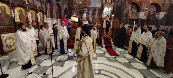 Στον Μέγα Πανηγυρικό Εσπερινό χοροστάτησε ο Σεβ. Μητροπολίτης Βρεσθένης κ. Θεόκλητος, καθώς ο Σεβασμιώτατος Μητροπολίτης απουσιάζει στη Σάμο, εκπροσωπώντας την Ιερά Σύνοδο στις εορταστικές εκδηλώσεις για τα 200 χρόνια από την απελευθέρωση της νήσου από τον τουρκικό ζυγό.