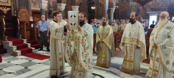 Σε κλίμα κατάνυξης πραγματοποιήθηκε η πανήγυρη της Μεταμορφώσεως στον εορτάζοντα Ναό του Βόλου, παρουσία ικανού αριθμού προσκυνητών, τηρουμένων των μέτρων για την προστασία της δημόσιας υγείας. Μάλιστα, τη φετινή πανήγυρη λαμπρύνουν με την παρουσία τους τα ιερά Λείψανα του Αγίου Λουκά του Ιατρού, Αρχιεπισκόπου Συμφερουπόλεως και Κριμαίας, τα οποία θα παραμείνουν προς προσκύνηση στον Ναό έως την Κυριακή 8/8.