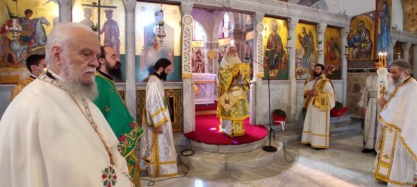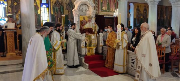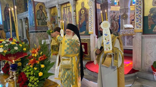 Στον Ιερό Ναό Αγίων Κωνσταντίνου και Ελένης Βόλου λειτούργησε σήμερα ο Σεβ. Μητροπολίτης Δημητριάδος κ. Ιγνάτιος, επί τη εορτή τη Υψώσεως του Τιμίου Σταυρού, παρουσία πλήθους πιστών, τηρουμένων των μέτρων για την προστασία της δημόσιας υγείας.