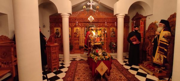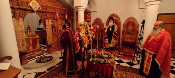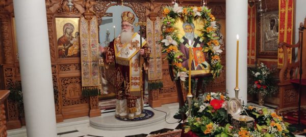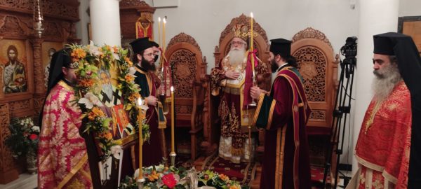 Ανήμερα της εορτής τελέστηκε η Αρχιερατική Θεία Λειτουργία, στην οποία τον Σεβασμιώτατο πλαισίωσαν, εκ μέρους του Ιερού Κλήρου, ο Πρωτοσύγκελλος Αρχιμ. Δαμασκηνός Κιαμέτης, ο οποίος κήρυξε και τον Θείο Λόγο και ο Γενικός Αρχιερατικός Επίτροπος. Το Ιεροψαλτικό αναλόγιο στελέχωσαν οι εκ των καλλιφωνοτέρων Κληρικών της Μητροπόλεως Αρχιμανδρίτες Σεραφείμ Κοντακτσής και Καλλίνικος Γεωργακόπουλος, οι οποίοι απέδωσαν αρτίως και σεμνοπρεπώς τους ύμνους της εορτής και της Θείας Λειτουργίας.