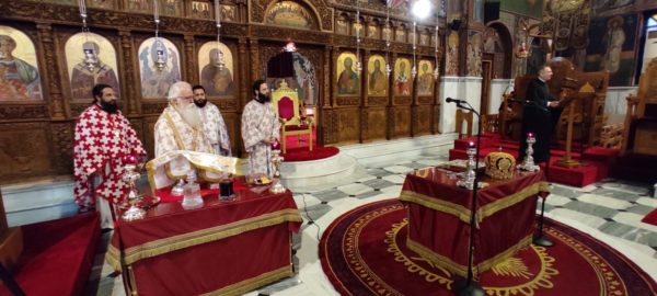 Στο τέλος, ο Σεβασμιώτατος επεσήμανε ότι στη Θεία Λειτουργία εκτυλίσσεται, κάθε φορά, ο επί γης βίος του Κυρίου, από την Γέννησή Του, που συμβολίζει η Προσκομιδή, την έναρξη του απολυτρωτικού Του έργου, που συμβολίζει η Μικρή Είσοδος, την προσφορά του Λόγου Του, διά των Αγιογραφικών αναγνωσμάτων, μέχρι την πορεία προς το Πάθος, που συμβολίζει η Μεγάλη Είσοδος, το Πάθος, την Ταφή και την Ανάσταση, που επαναλαμβάνονται επί της Αγίας Τραπέζης, όπου τελείται το Μυστήριο της Θείας Ευχαριστίας, με το Οποίο επιτυγχάνεται η ένωση των ανθρώπων με τον Θεό και μεταξύ τους. «Από τότε, μέχρι σήμερα», τόνισε, «γύρω από την Αγία Τράπεζα συναντώμεθα όλοι οι πιστοί και τελούμε μαζί το Μυστήριο. Και αυτό το γεγονός συνιστά την επιστροφή μας στον Παράδεισο. Αυτό είναι η Εκκλησία. Γινόμαστε ένα με τον Χριστό και μεταξύ μας».