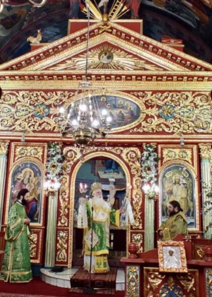 Η Θεία Λειτουργία τελέστηκε κεκλεισμένων των θυρών, στο πλαίσιο των μέτρων για την προστασία της δημόσιας υγείας και μεταδόθηκε απ’ ευθείας από τον τηλεοπτικό σταθμό Astra.