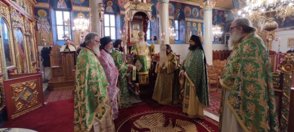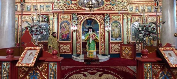 Η Θεία Λειτουργία τελέστηκε κεκλεισμένων των θυρών, στο πλαίσιο των μέτρων για την προστασία της δημόσιας υγείας και μεταδόθηκε απ’ ευθείας από τον τηλεοπτικό σταθμό Astra.