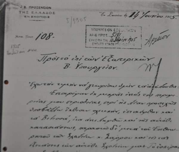 Ο ακριβής τίτλος του θέματος: «Η Εκπαιδευτική Κίνησις στα Σκόπια κατά το σχολικό έτος 1895-1896 και το ψευδώνυμο “Μακεδονικό” Έθνος σύμφωνα με επίσημες προξενικές εκθέσεις»