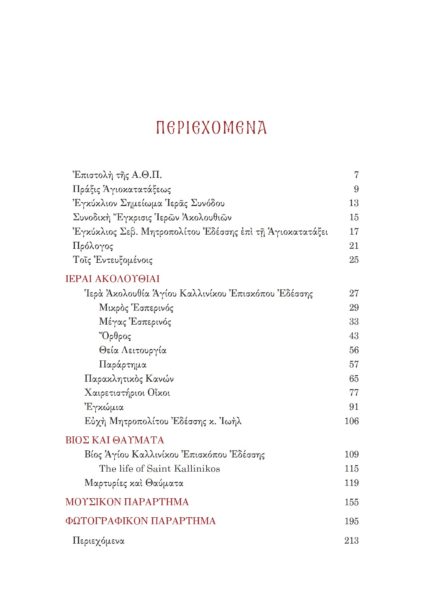 «Ιεραί Ακολουθίαι-Βίος και Θαύματα του Αγίου Καλλινίκου Επισκόπου Εδέσσης”