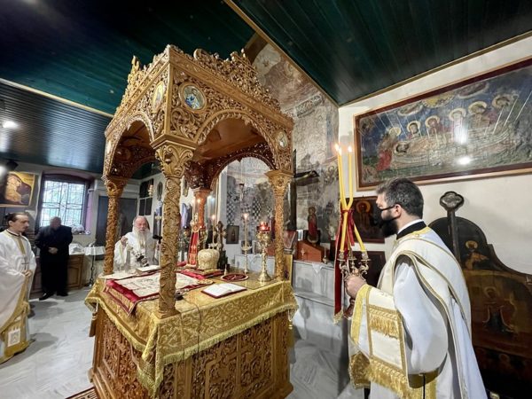 Τον Θείο Λόγο κήρυξε προς το πολυπληθές εκκλησίασμα ο Σεβασμιώτατος, ο οποίος αναφέρθηκε στους τιμώμενους Αγίους της Εκκλησίας μας.