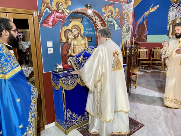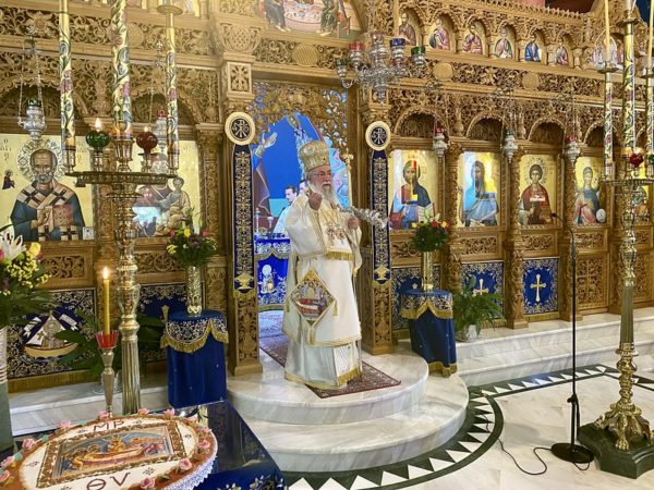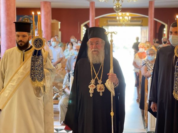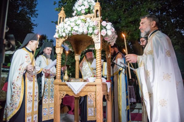 Το Σάββατο 14 Αυγούστου, τελέσθηκε ο πανηγυρικός Αρχιερατικός Εσπερινός σε ειδική εξέδρα στον προαύλιο χώρο του προσκυνήματος χοροστατούντος του Σεβασμιωτάτου συμπαραστατουμένου υπό Ιερέων και Διακόνων της Μητροπόλεως.