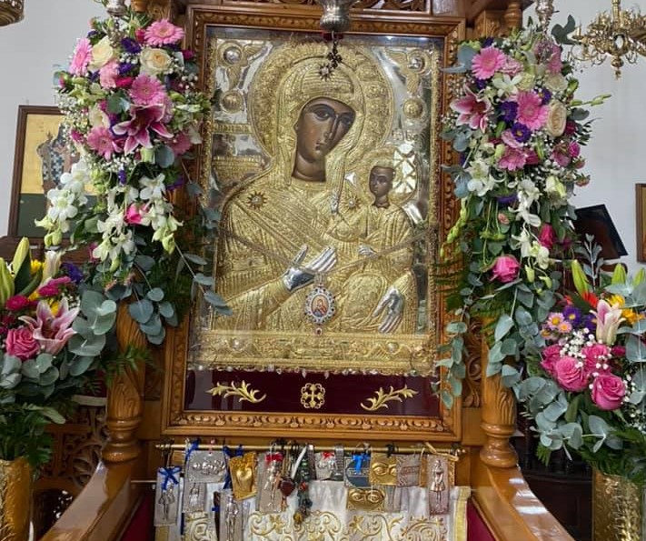Πλήθος πιστών, τηρώντας τα ισχύοντα υγειονομικά μέτρα, προσήλθε για να λάβει τη χάρη της χαριτοβρύτου ιεράς εικόνος της Υπεραγίας Θεοτόκου της Κυρίας «Προυσιωτίσσης», ακριβές αντίγραφο της οποίας θησαυρίζεται στον Ιερό Ναό, και την ευλογία εκ των ιερών λειψάνων του Αγίου Νεκταρίου.