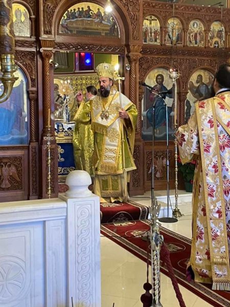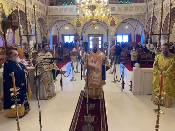 Τέλος, ο Σεβασμιώτατος ευχαρίστησε τον έχοντα την ευθύνη της τηλεοπτικής αναμεταδόσεως της θείας λειτουργίας μέσω του τηλεοπτικού διαύλου Volcano κ. Παναγιώτη Μυτιληναίο για την ευγενική προσφορά του προς εκείνους που δεν κατάφεραν να παρευρεθούν δια ζώσης στην λειτουργική σύναξη.