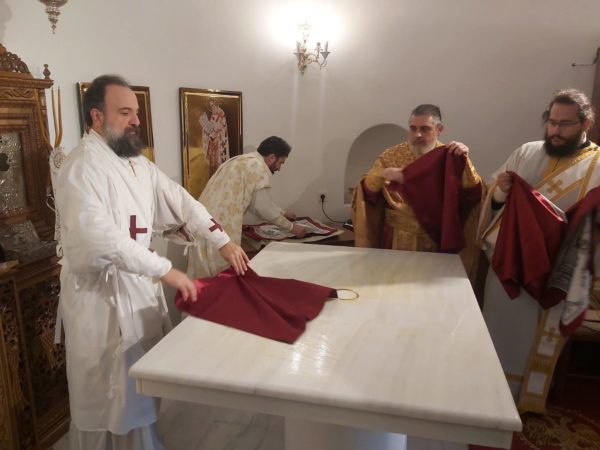 Μέσα στο ευφρόσυνο κλίμα του Ιερού Δωδεκαημέρου ο Μητροπολίτης Θήρας κ. Αμφιλόχιος τέλεσε τα πρώτα εγκαίνια της Αρχιερατείας του, ημέρα της εορτίου μνήμης της ανακομιδής των ιερών λειψάνων του Αγίου νεομάρτυρος Εφραίμ (του εν Νέα Μάκρη Αττικής), στο περικαλλές παρεκκλήσιο της ενορίας Ευαγγελισμού της Θεοτόκου – Εμπορείου, αφιερωμένο στη μνήμη του Αγίου νεομάρτυρος Εφραίμ.