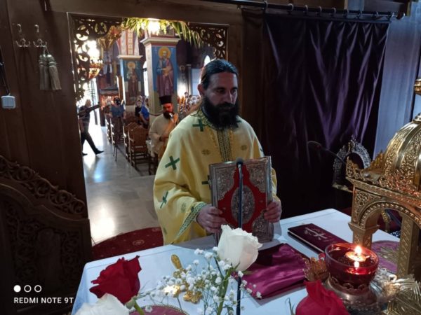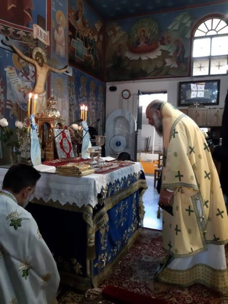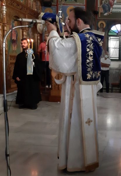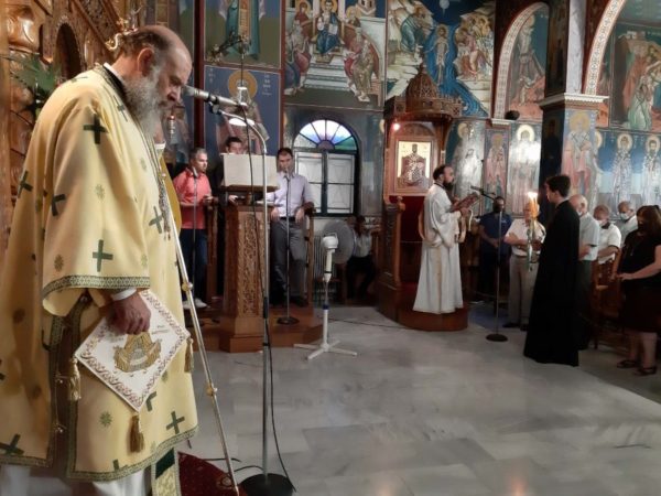 Ανήμερα της εορτής, την Δευτέρα 30 Αυγούστου, χοροστάτησε στην ακολουθία του Όρθρου και τέλεσε την Θεία Λειτουργία στον προαναφερόμενο Πανηγυρίζοντα Ιερό Ναό.