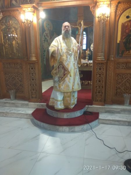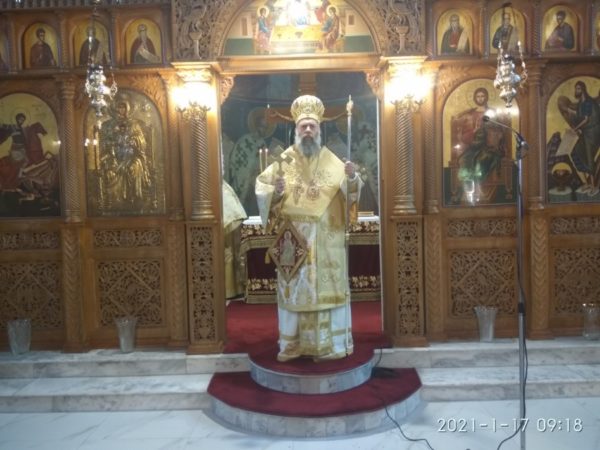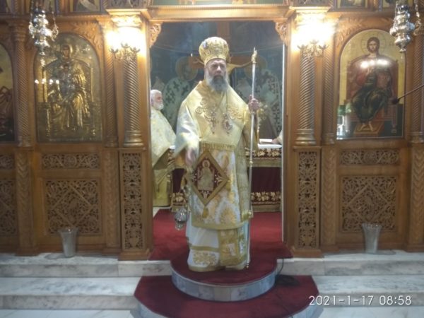 Ο Σεβασμιώτατος Μητροπολίτης Θεσσαλιώτιδος και Φαναριοφερσάλων κ. Τιμόθεος, την Κυριακή 17 Ιανουαρίου 2021, χοροστάτησε στην ακολουθία του Όρθρου και τέλεσε τη Θεία λειτουργία στον Ιερό Ναό Αγίου Θεοδώρου Αρτεσιανού.