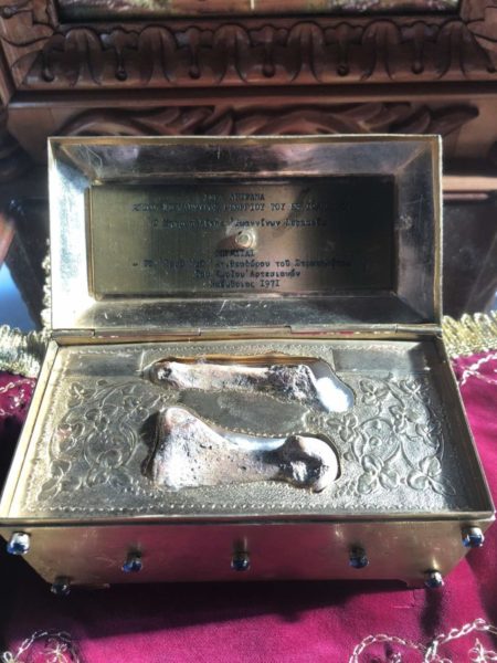 Στον Ιερό Ναό φυλάσσεται απότμημα του ιερού λειψάνου του αγίου και ενδόξου Αγίου Γεωργίου του εν Ιωαννίνοις μαρτυρήσαντα, του οποίου κατ’ αυτή την ημέρα τιμάται η ιερά μνήμη του.