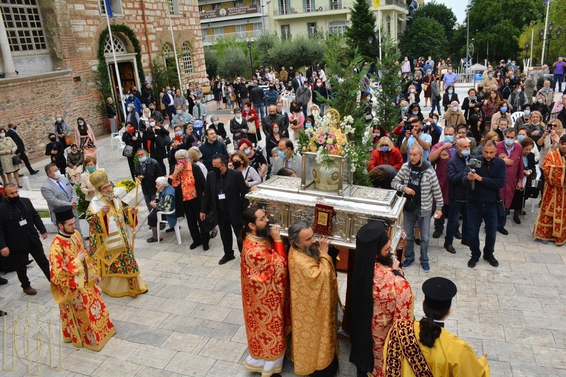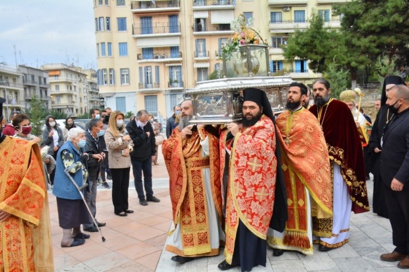 ⦁ Ὁ ἑορτασμὸς καὶ ἡ πανήγυρις τοῦ ἁγίου Δημητρίου τελέσθηκε ἐφέτος κάτω ἀπὸ ἐντελῶς ἰδιαίτερες καὶ πρωτόγνωρες συνθῆκες. Δὲν πραγματοποιήθηκε πανηγυρικὴ ὑποδοχὴ τῆς εἰκόνος τῆς Παναγίας, οὔτε ἡ συνήθης λιτάνευση τῶν Λειψάνων τοῦ Ἁγίου στοὺς δρόμους τῆς πόλης, ὅπως κάθε χρόνο, ἐνῶ ἐπίσης ἡ ἀκολουθία τοῦ καθαγιασμοῦ τοῦ Μύρου τοῦ Ἁγίου, ποὺ συγκεντρώνει χιλιάδες πιστοὺς, τελέσθηκε κεκλεισμένων τῶν θυρῶν, χωρὶς τὴν παρουσία πιστῶν. Ἐπίσης ἀπὸ στοιχεῖα ποὺ ὁ Ναὸς διαθέτει (π.χ. διάθεση κηρίων), ἀλλὰ καὶ ἀπὸ ἐξωτερικοὺς παρατηρητὲς (π.χ. θὰ μποροῦσαν νὰ ἐρωτηθοῦν τὰ σωματεῖα τουριστικῶν πρακτόρων, ξενοδόχων κτλ. ἐὰν ὑπῆρξαν ὀργανωμένες ἤ καὶ μεμονωμένες ἐκδρομὲς μὲ προορισμὸ τὴν Θεσσαλονίκη γιὰ τὸ τριήμερο τοῦ ἁγίου Δημητρίου), προκύπτει ὅτι ἡ προσέλευση τῶν πιστῶν περιορίστηκε περίπου στὸ ¼ σὲ σχέση μὲ τὰ παρελθόντα ἔτη.