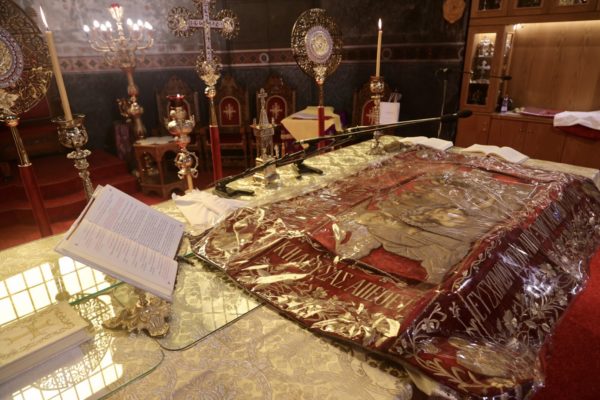 Την ακολουθία της αποκαθήλωσης και στη συνέχεια την ακολουθία της ταφής του Θεανθρώπου Ιησού Χριστού, τέλεσαν οι ιερείς του ναού, αρχιμ. Ειρηναίος Βογιατζής, Πρωτ. Παλαιολόγος Μάνος, ο πρεσβ. Νικόλαος Ζουγκανάρου και ο ιεροδ. Αλέξανδρος Νικολόγιου.