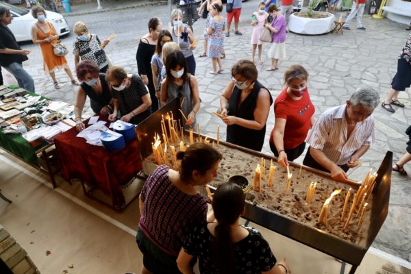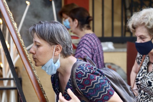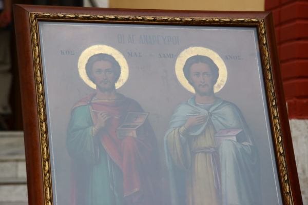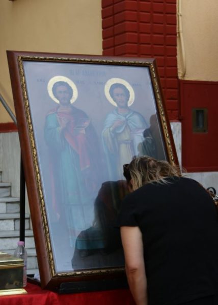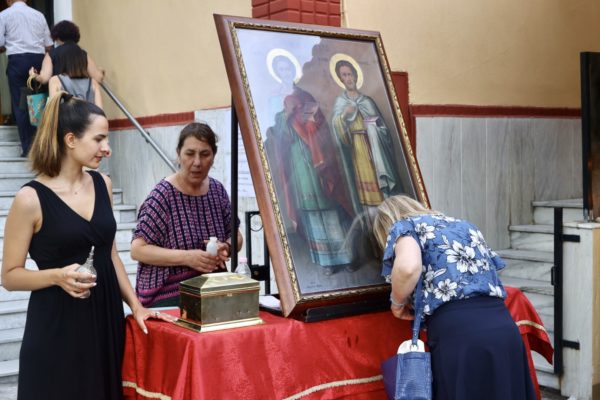 Πολλοί πιστοί συμμετείχαν στην ακολουθία, τηρώντας το υγειονομικό πρωτόκολλο, παρά τον καύσωνα της ημέρας καθώς και πολλοί ασθενείς προσέτρεξαν στους θεραπευτές αγίους προσευχόμενοι για το πολύτιμο αγαθό της υγείας.