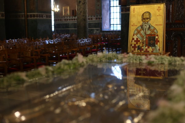 Την μνήμη του Αγίου Βασιλείου, Αρχιεπισκόπου Θεσσαλονίκης του Ομολογητού και Συναξαριστού, πανηγύρισε σήμερα η Θεσσαλινικη στον Ιερό Καθεδρικό Ναό της Αγίας Σοφίας, όπου και αποθησαυριζονται τα ιερά λείψανα του Αγίου.