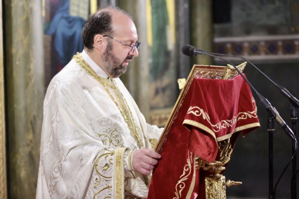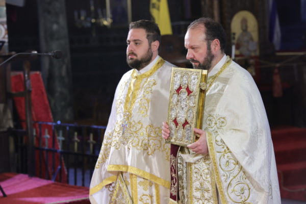 Την Θεία Λειτουργία τέλεσαν οι ιερείς του ναού, Αρχιμανδρίτης Ειρηναίος Βογιατζής και Πρωτοπρεσβύτερος Παλαιολόγος Μάνος κατά τη διάρκεια της προανήγγειλαν την Ανάσταση με το Προκείμενο «Ἀνάστα ὁ Θεός, κρῖνον τὴν γῆν».