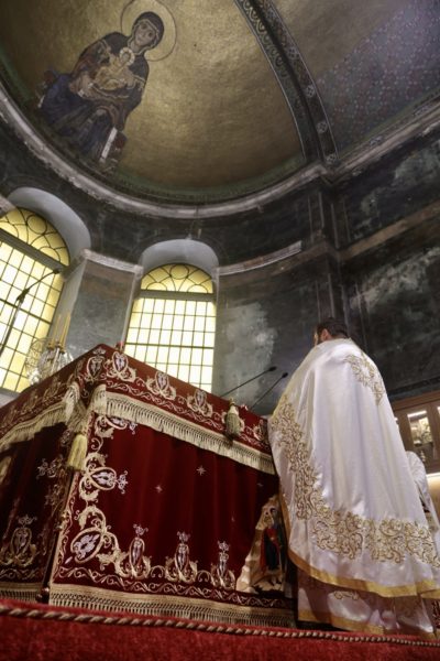 Προσδοκώντας το χαρμόσυνο μήνυμα της Αναστάσεως και με τον προβλεπόμενο αριθμό πιστών και τηρουμένων των υγειονομικών μέτρων για την πανδημία του COVID-19, στον Ιερό Καθεδρικό Ναό της Του Θεού Σοφίας της Ι. Μητροπόλεως Θεσσαλονίκης, τελέστηκε το πρωί τού Μεγάλου Σαββάτου, ο Μέγας Εσπερινός της Αναστάσεως και η Θεία Λειτουργία του Μεγάλου Βασιλείου, η γνωστή σε όλους μας ακολουθία της «Πρώτης Ανάστασης».