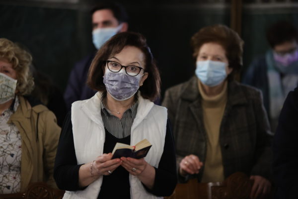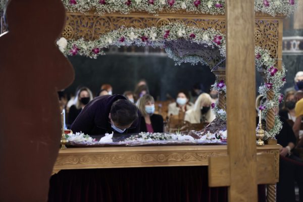 Οι παρευρισκόμενοι πιστοί τηρώντας όλα τα προβλεπόμενα μέτρα για την πανδημία του COVID-19, με ευλάβεια συμμετείχαν στην ακολουθία του Επιταφίου.