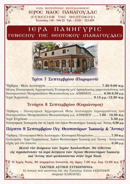 Με την ακολουθία του Μεγάλου Πανηγυρικού Εσπερινού του Γενεθλίου της Θεοτόκου άρχισε χθες, 7/9/2021, η γιορτή στον πανηγυρίζοντα Ιερό Ναό Παναγούδας Γοργϋπηκόου.