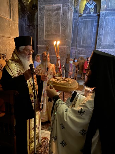 Ο Σεβασμιώτατος στο τέλος του Εσπερινού αναφέρθηκε στη σημασία της σταυρικής θυσίας και της Ανάστασης του Κυρίου μας για την σωτηρία των ανθρώπων, καθώς και στον τιμώμενο Όσιο Σεραφείμ, και ευχήθηκε σε όλους τους πιστούς Χρόνια πολλά, υγεία και δύναμη δια πρεσβειών του Οσίου Σεραφείμ.