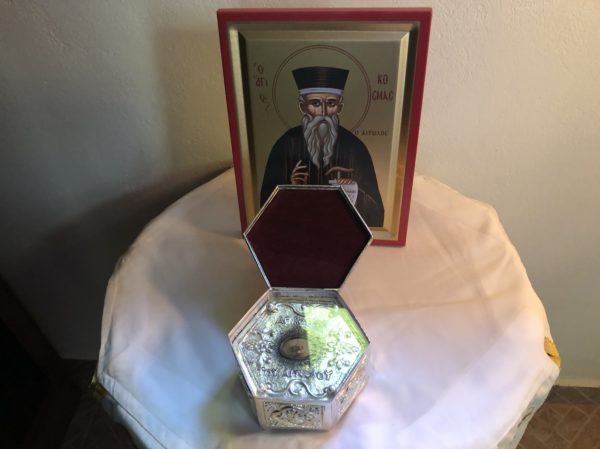 Το απόγευμα της Δευτέρας, παραμονή της εορτής του Αγίου Κοσμά του Αιτωλού, ο Σεβασμιώτατος τέλεσε τον Εσπερινό στο Παρεκκλήσιο του Αγίου Κοσμά του Αιτωλού στο Καπαρέλλι, που βρίσκεται σε οικόπεδο του π. Ιωάννη Ρισάνου, κληρικού της Μητρόπολης. Στη συνέχεια, μετέβη στα Λεύκτρα, όπου τέλεσε τον Εσπερινό στον Ιερό Ναό Μεταμορφώσεως του Σωτήρος με την συμμετοχή αρκετών πιστών και ευχήθηκε στον Εφημέριο της Ενορίας π. Κοσμά Κρόνγκο για την ονομαστική του εορτή.