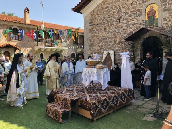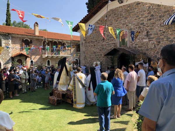 Το Θείο Λόγο κήρυξε ο πανοσ. αρχιμ. π. Γεώργιος Θανάσου. Στο τέλος, ο Σεβασμιώτατος ανέφερε, ότι τούτες τις ημέρες θα πρέπει να στρέψουμε το βλέμμα μας, τη βοήθειά μας και την προσευχή μας στους πληγέντες από τις πυρκαγιές συνανθρώπους μας και ευχήθηκε στην Καθηγουμένη της Μονής Ξένη μοναχή και στους προσκυνητές Χρόνια πολλά και η Παναγία να τους στηρίζει και να τους ενισχύει.