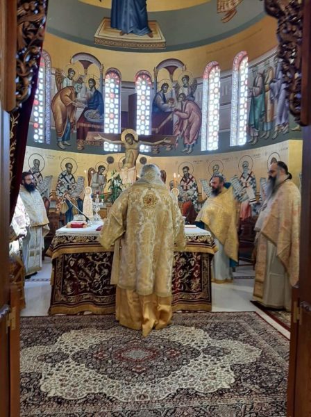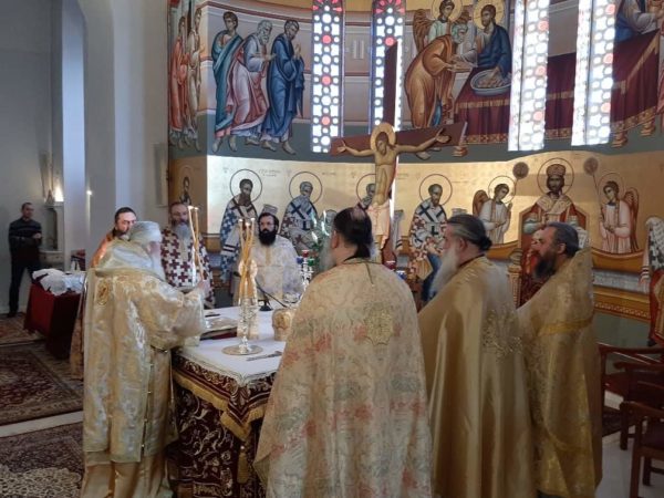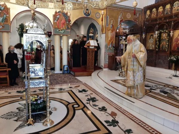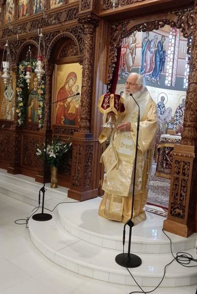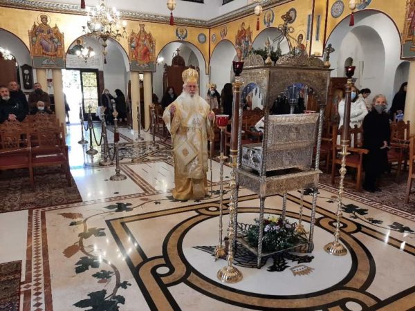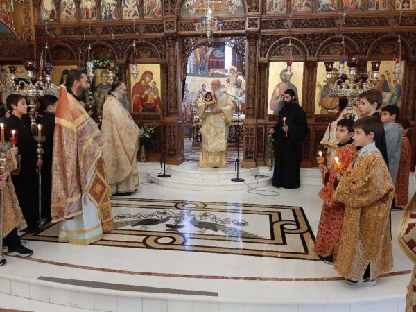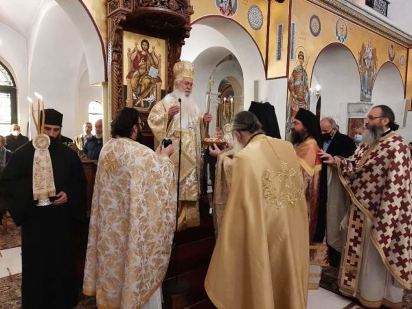 Μετά το πέρας της Θείας Ευχαριστίας, ο Σεβασμιώτατος στο κήρυγμά του προς τους πιστούς μίλησε για το ασκητικό παράδειγμα του Αγίου, και στην συνεχεία χειροθέτησε σε Αναγνώστη τον ευσεβή νέο Νεκτάριο Γεραμάνη, υιό του πατρός Αθανασίου και εφημέριου του ιερού ναού.