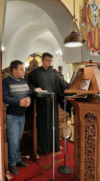Επίσης το αναλόγιο διηκόνησε ο Πρωτοψάλτης του ιερού ναού Αγίων Θεοδώρων Θήβας κ. Στάμος Χαρίσης, με την συμμετοχή και άλλων ιεροψαλτών που πλαισίωσαν τα αναλόγια του ιερού ναού.
