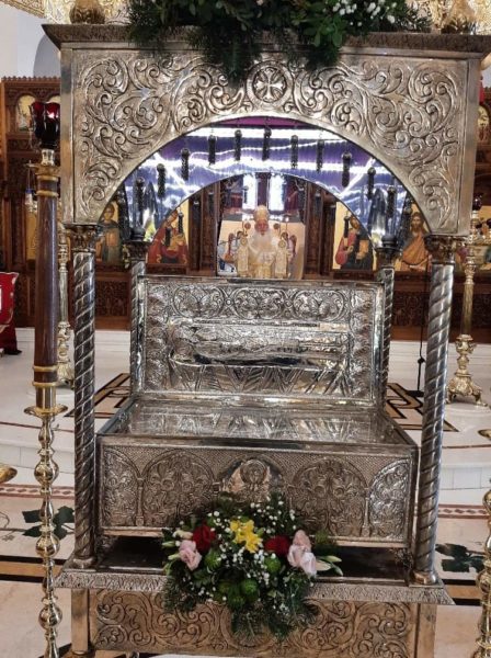 Την παραμονή της εορτής τελέσθηκε ο Πανηγυρικός Εσπερινός και η λιτανεία της εικόνας και των ιερών λειψάνων του Αγίου γύρω από τον ιερό ναό.