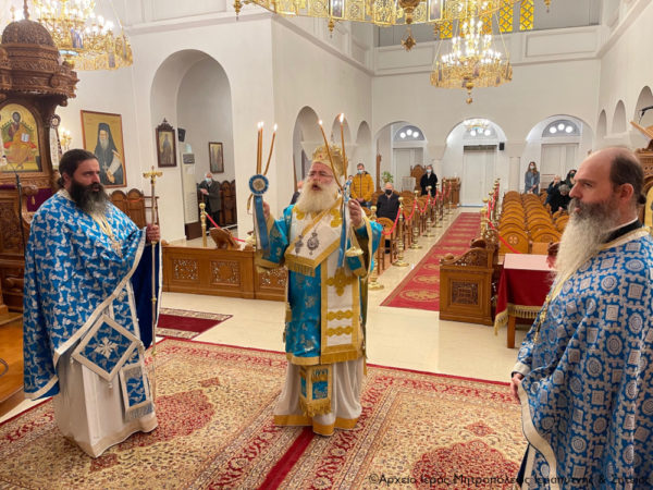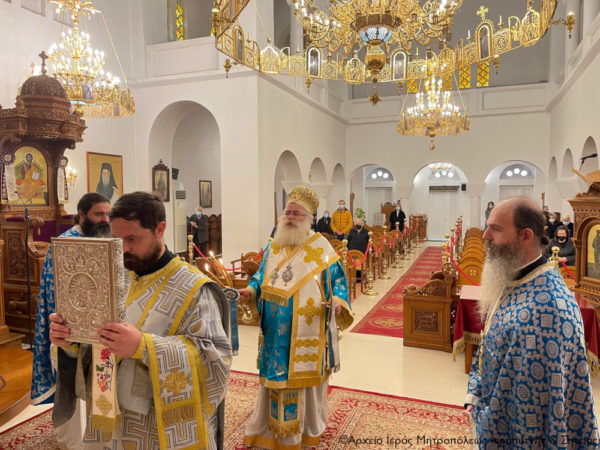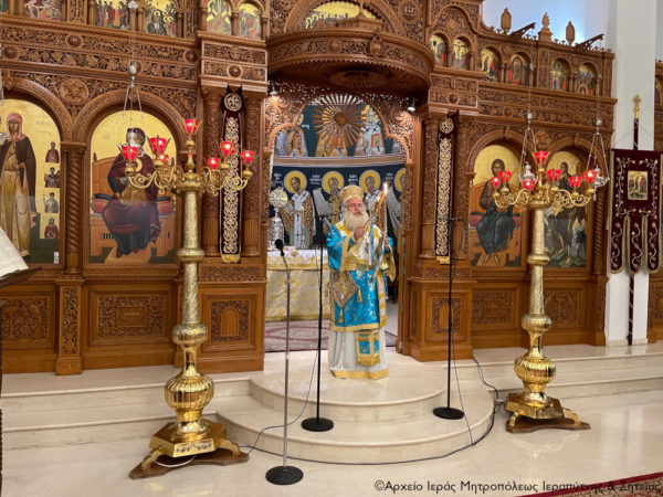 Στην Αρχιερατική Θεία Λειτουργία έλαβαν μέρος ο Πανοσιολ. Πρωτοσύγκελλος της Ι. Μητροπόλεως Αρχιμ. Αμβρόσιος Σκαρβέλης, ο ιερατικώς προϊστάμενος του ναού Πανοσιολ. Αρχιμ. Πορφύριος Αγγελάκης και ο Διάκονος π. Θεμιστοκλής Μπεϊνάς.
