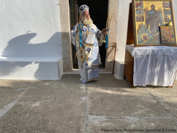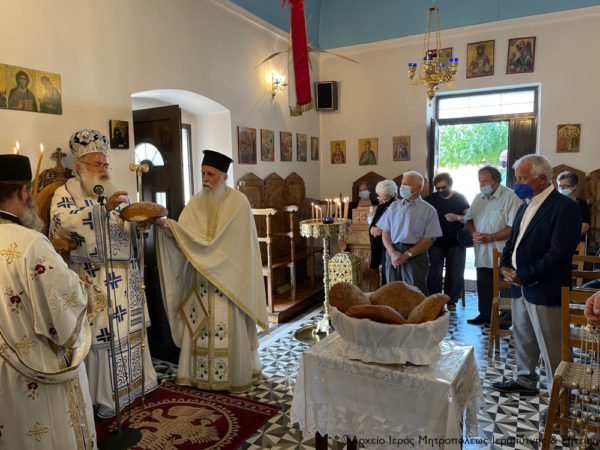Ο Σεβ. Μητροπολίτης Ιεραπύτνης και Σητείας κ. Κύριλλος χοροστάτησε κατά την ακολουθία του Όρθρου, ευλόγησε τους προσφερόμενους άρτους και στη συνέχεια ιερούργησε και πριν την Απόλυση τέλεσε το Μνημόσυνο υπέρ αναπαύσεως «πάντων των εν τη Μικρά Ασία σφαγιασθέντων, ολοκαυτωθέντων και αναιρεθέντων πατέρων και αδελφών ημών» κατά την Μικρασιατική Καταστροφή, στον προαύλιο χώρο του ναού, ενώπιον της προτομής του εκ Ζήρου καταγομένου Εθνοϊερομάρτυρος Ιακώβου Αρχατζικάκη, ο οποίος ως γνωστόν βρήκε φρικτό θάνατο από τους αιμοσταγείς Τούρκους στον Βουτζά, όπου υπηρετούσε ως Εφημέριος, κατά την φοβερά γεγονότα της καταστροφής της Σμύρνης τον Αύγουστο του 1922.