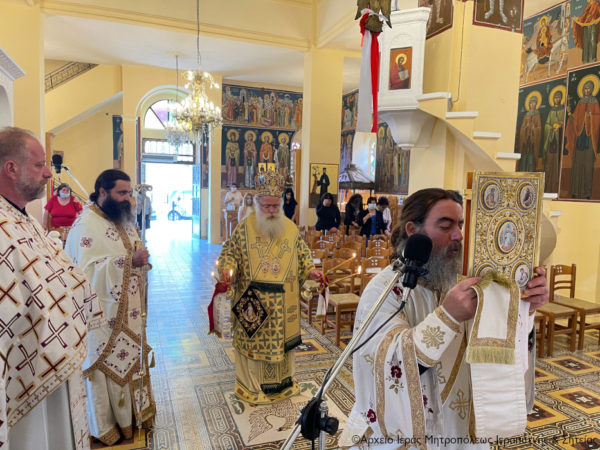 Στην Αρχιερατική Θεία Λειτουργία έλαβαν μέρος ο Πανοσιολ. Πρωτοσύγκελλος της Ι. Μητροπόλεως Αρχιμ. Αμβρόσιος Σκαρβέλης και οι Εφημέριοι των Ενοριών Κάτω Χωριού και Επισκοπής Οικονόμος Παντελεήμων Καββουσανός και Ιερεύς Ευάγγελος Γκιάλπης αντίστοιχα, καθώς και ο Ιερολ. Διάκονος π. Τίτος Ματαλλιωτάκης, ενώ επικεφαλής του χορού των ιεροψαλτών ήταν ο Πρωτοψάλτης και Διευθυντής της Σχολής Βυζ. Μουσικής της Ι. Μητροπόλεως «Άγιος Ανδρέας ο Κρήτης» κ. Ιω. Αρώνης. Παρέστησαν αρκετοί πιστοί εντός του πανηγυρίζοντος ναού τηρώντας σχολαστικά τα μέτρα προστασίας από τον κορωνοϊό, μεταξύ των οποίων ήταν η Αντιδήμαρχος του Δήμου Ιεράπετρας κ. Χρύσα Χατζημαρκάκη.